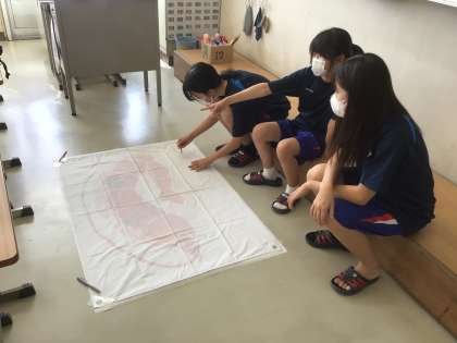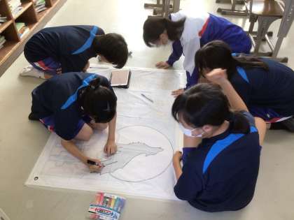 1年生 10/6(月) スタッフ会の時間を使って応援旗の制作が始まりました 公開日 2025/10/06 更新日 2025/10/06 学校生活の様子 今日は第2回スタッフ会が開かれました。学級では、その時間を使って応援旗担当の生徒が旗の制作を始めました。旗に書き入れる文字の大きさやフォントなどのアイデアを出し合いながら作業を進めていました。