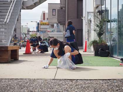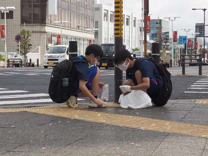 10月20日の午前中、豊田市駅周辺にて、挙母祭りに使用した紙吹雪等を片付けるための清掃作業をしました。生徒たちは植え込みの中に入った紙吹雪を取ったり、側溝付近に溜まっているごみなどを片付けたりしていました。活動終了後の振り返りでは、「地域貢献ができてよかった」「こういう形で挙母祭に参加できてよかった」といった感想を書いた生徒がいました。