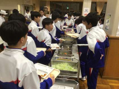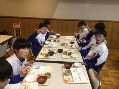 しっかり活動したので、おいしく夕食をいただいています!お米は地元産のミネアサヒです。