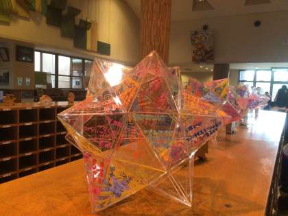昨晩、完成した学年製作物の四つの星を飾っています。所員の方たちにも人気です。今日、学校へ持ち帰ります。