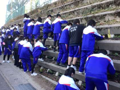 本日本校南側にあるフラワーロードの花壇に、冬の花であるパンジーを、麦の会のメンバーとボランティアで植えました。1年生からも多くの生徒が参加して約1,800本ほどの苗を植えました。短い時間でしたが、参加した生徒たちは機敏に動き、次々と苗を植えていました。