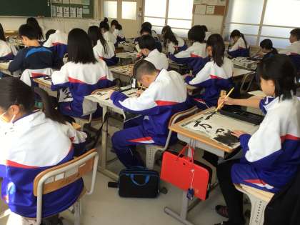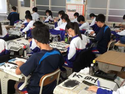 1年生 12/11(木) 書き初めの練習、始まる 公開日 2025/12/11 更新日 2025/12/11 学校生活の様子 今週から、国語科の授業で書き初めの練習が始まりました。1年生の課題は、「万里一空」です。この熟語は、剣豪宮本武蔵が著した「五輪書」の中にあるもので、「目標や目的に向かって、やるべきことを見失わず、努力し続けること」を意味しています。 生徒たちは、静かな環境の中で書き初めに取り組んでいました。