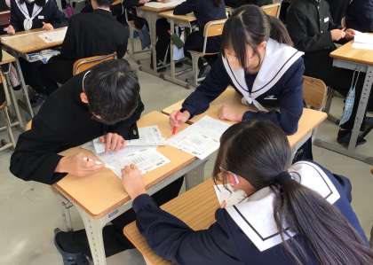 理科の授業では、お互いに解けなかった問題を教え合い、学び合いの授業をしています。