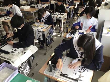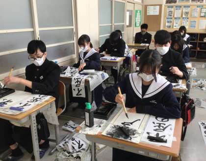 3年生 1/7(水) 書き初め大会 公開日 2026/01/08 更新日 2026/01/08 学校生活の様子 今日は書き初め大会があり、3年生は「不屈の精神」を書きました。心を新たにし、受験に向けて気持ちを高めました。