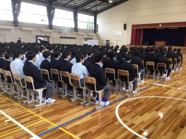卒業式に向けての練習が始まりました。今日は、どのような気持ちで臨むのか、卒業式のおおまかな流れを確認したあと、座礼の仕方や起立・着席の動き等の練習をしました。生徒たちは緊張感を持って取り組むことができました。