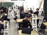年始に行われる書初め大会に向けて練習をしています。 「万里一空」は、一つの目標に...
