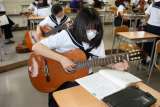 1年生の英語の授業様子です。新しく学んだ単語や文法を学習用タブレットを活用し、...