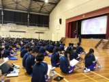 地域の防災に携わっている方をお招きして、各分野の代表グループが体育館にて調べ学...