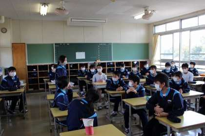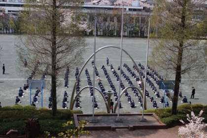 学年集会は、運動場で、間隔をしっかりとって行いました。