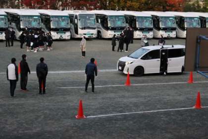 バス14台に乗車して、生徒たちは大阪に出発しました。