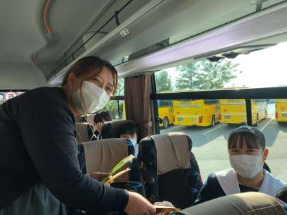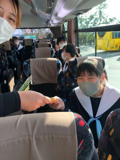 お小遣い、クーポン券は、バスの中で配付しました。