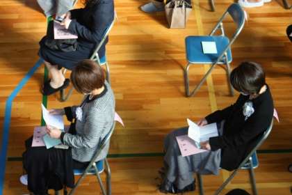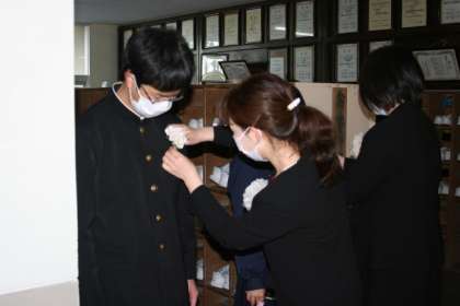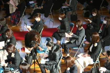 卒業生は胸にコサージュを付けてもらいました。 待機中の保護者は、卒業生からの手紙を読んでいました。