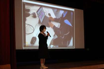 最初は部活紹介を、3年生の代表生徒が登壇して行いました。