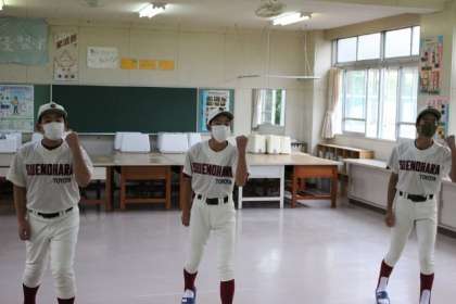 最初は、野球部、サッカー部、陸上部男子です。