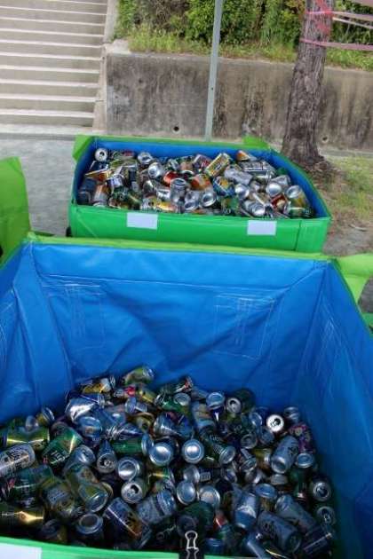 アルミ缶は1袋いっぱいになり、2袋目です。