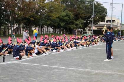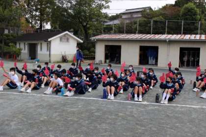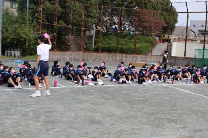 最初は3年生を中心とした、縦割り応援の練習でした。
