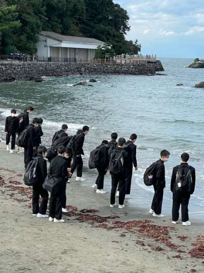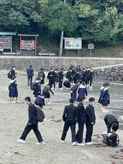 食後は二見の夫婦岩付近の海岸を散歩です。