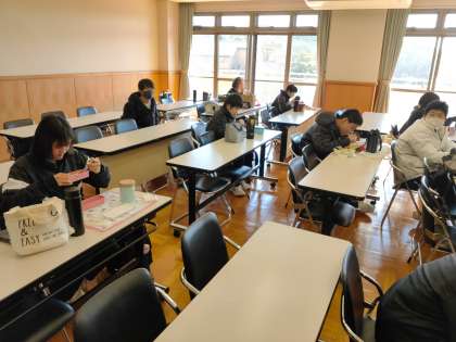 室内で距離をあけて、黙って食べます。 仕方ないですが、少し寂しいですね。