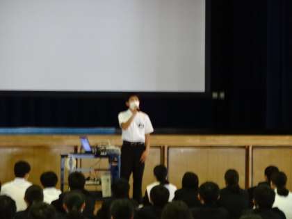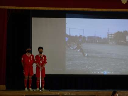 4月25日6時間目の認証式後、生徒会主催の新入生歓迎会が行われました。1年生は、体育館で、先輩が披露する部活動の紹介や学校生活の劇やクイズを見ました。その後、教室で各学級団でのリモート交流会を行いました。2・3年生は、学級ごとに工夫を凝らして、末野原中を紹介していました。とても楽しい交流会となりました。