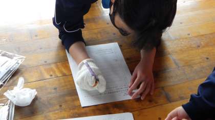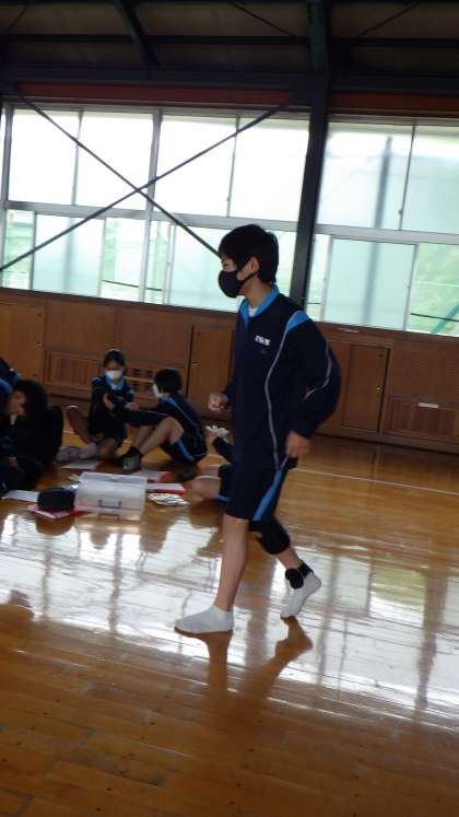 2021年度より、技術・家庭科の授業で、高齢者との関わりを学ぶことになっています。2年生も家庭科の授業で、高齢者への理解を深める授業を行いました。高齢者の行動の特徴や関わりを学び、グッズを身に着けて、自ら高齢者の立場に立ってみる疑似体験を行っています。この授業から、高齢者の身体的特徴を理解し、高齢者の気持ちを実感したり、コミュニケーションの取り方を工夫したりするなどして、6月に行われる職場体験学習にも役立ってくれることを期待します。
