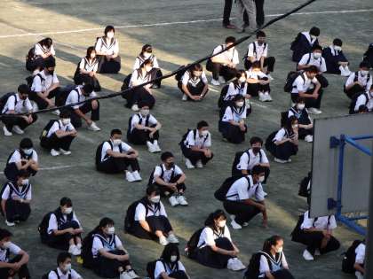 出発式を終え、バスには、検温・消毒をして乗り込みました。見送りの先生たちにも元気に手をふり、出かけていきました。