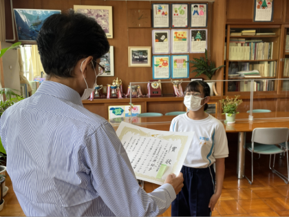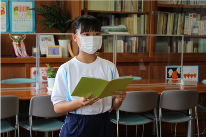 本日5時間目に、夏休み前の全校集会をリモートで行いました。市内大会やコンクールの表彰伝達と生徒の意見発表、校長先生のお話がありました。1年川合さんは、「ドリルコンテストを通して、クラスみんなで声を掛け合うこと、日々努力することの大切さを学びました。日常の生活で行っていることにも、みんなで声をかけあって正しいと思う行動をしていきたい。」と発表しました。