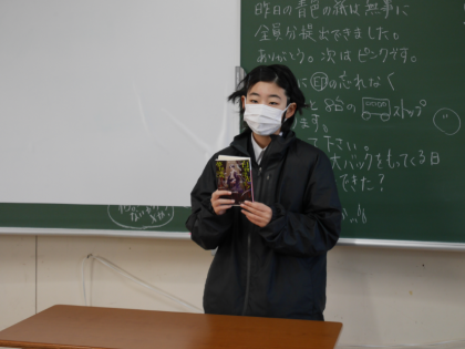 1月18日(水)19日(木)の朝読書の時間に図書委員会の企画「図書館革命第3弾 本の一行紹介」が行われました。図書委員会の生徒と先生方がお気に入りのセリフや名言などを紹介しました。この企画で本をより身近に感じ、興味をもつ生徒が一人でも増えると嬉しいです。