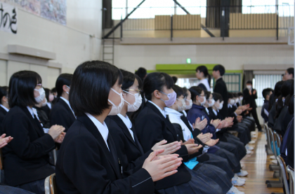 3月2日(木)に、1・3年生合同卒業式練習を行いました。限られた時間での練習に集中して取り組む3年生の姿に、卒業生としての自覚を感じました。1年生は本番、リモートでの参加となりますが、学校生活の様々な場面で引っ張ってくれた3年生の新たな門出に向けて、感謝の気持ちで卒業を祝います。