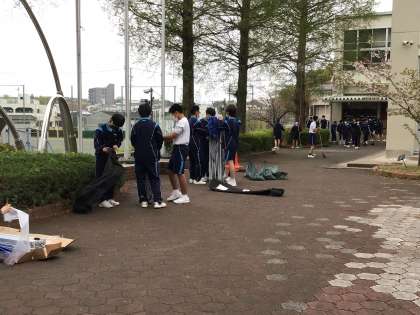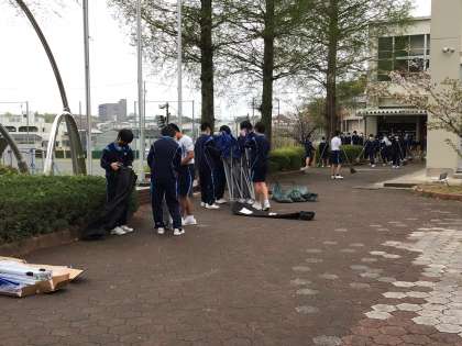 受付テントを準備してくれている3年生です。明日は雨の入学式になりそうです。午後や夜間に風が吹く可能性も考えて、テントを設営した後は低くしておく予定です。青空の入学式はもちろん良いですが、しっとりと雨の降る入学式も「雨のち晴れ」と考えればなかなか良いものではないでしょうか。お天気はどうであっても、心は晴れやかに新入生の皆さんを迎えます。