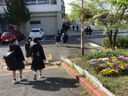 おはようございます。今朝の登校風景です。風が少し冷たいですが爽やかな朝です。今週もがんばりましょう!