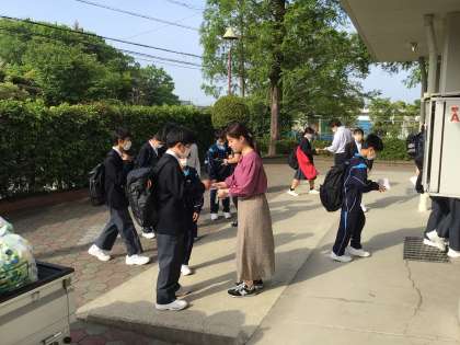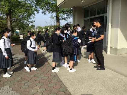 おはようございます。半袖の生徒、ブレザーを脱いで白い長袖で登校する生徒、体操服で登校する生徒などいろいろです。暑い時は無理をせず服装で調節しましょう。昇降口前のハナミズキは今が盛りです。今日も爽やかにがんばりましょう。