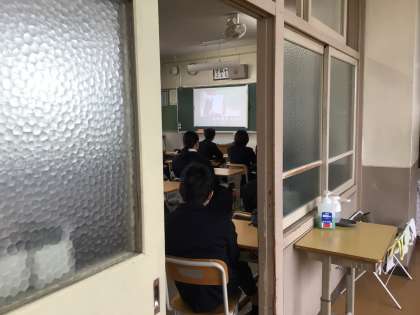 今朝も8時に朝の活動が始まりました。3年生教室にはICTカートが設置され、各学級をTeamsでつないでリモート学年集会が行われていました。内容は修学旅行の班別活動計画の立て方や諸注意についてです。全体で説明を聞いた後は、各学級で担任の先生が班別活動計画書を配付して説明していました。いよいよ修学旅行に向けて具体的に動き始めますね。楽しみですね!