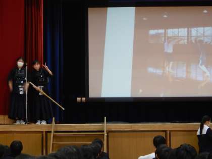 昨日の6時間目の様子です。校長室での認証式のあとで新入生歓迎会が行われました。学校生活の紹介や部活動の紹介を3年生が中心になって行いました。時折笑いが起こる和やかな会になりました。