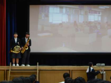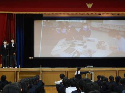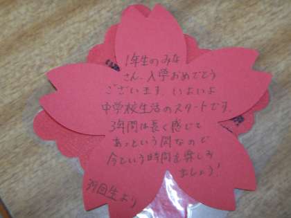 部活動紹介の様子です。上級生からの心のこもったメッセージも1年生に渡されました。