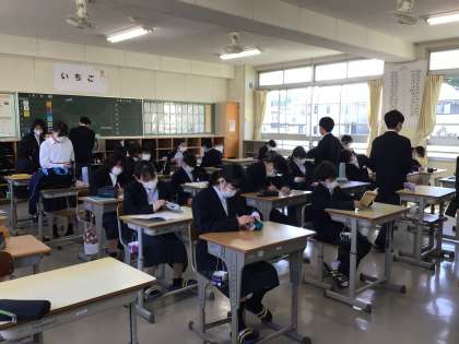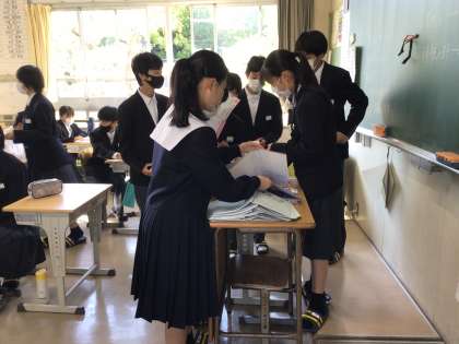 おはようございます。今朝も風が少し冷たく、肌寒い感じがします。朝8時の1年生の様子です。登校してきて朝の支度をする生徒、課題などを提出する生徒、読書を始めている生徒、級訓の掲示物をさっそく作っている生徒たちもいます。学校生活に慣れてきたようです。今日も爽やかに頑張りましょう!