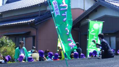 午前中に学校そばの石川製茶工場さんで行われた豊田市茶葉組合さんの「とよた新茶・手もみ講習会」にお招きいただき、参加させていただきました。とても広々としたお茶畑が広がっていました。