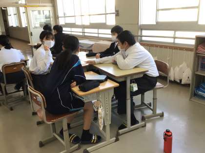 おはようございます。今朝は2年7組の教室からです。朝の会で継続的に班活動を行っています。毎日テーマに沿って班で話し合いを行います。互いに遠慮なく自分の意見を発表する様子が見られました。自分の考えをもつこと、友達の考えに「なるほど」と思うこと、伝え合うこと。こうした活動の積み重ねは授業の充実にもつながります。