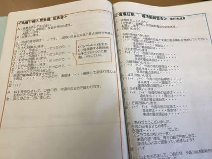班活動のノートには、曜日ごとに行う内容と話し合いの進め方などが書かれた資料が綴じられています。こうした活動は慣れるとスムーズにできるようになります。生徒はとても楽しそうで、活発に意見交換を行っていました。