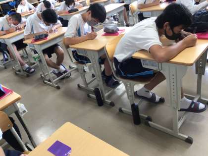 修学旅行2日目の班別活動の最終確認を行っているクラスもありました。タブレットのGoogleマップで経路を調べて予習しているグループ、計画表の再確認をしているグループなど、班ごとに話し合いを進めていました。イメージトレーニングや予習はバッチリですか?自分たちで電車に乗って行動する体験はとても思い出深いものになると思います。2日目の班別活動&ディズニーランドは良い天気になる予報です。楽しみですね。