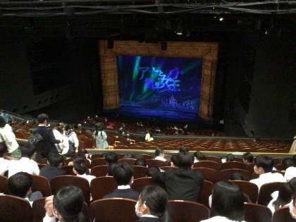 アナと雪の女王、まもなく開演です。オーケストラの音が聴こえます。楽しみです。夕食後もみんな元気です。
