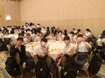 しっかり食べています。オレンジジュースやアップルジュース、シリアル、ヨーグルトなどもあります。いろいろあって迷っている子もたくさんいます。何度もおかわりに行く子もたくさんいます。果物コーナーの綺麗に盛り付けられた果物たちを見て「何これ、めっちゃオシャレじゃん」と呟きながらテンションがあがっている男子がいました。