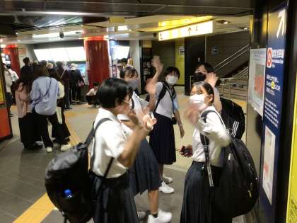 浅草の地下鉄乗り場に向かう階段で出会いました。舞浜でのちほど!