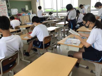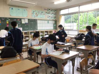 8時前。テスト前の時間も有効に使って勉強をしている生徒の姿があります。直前の見直し、大事ですね。