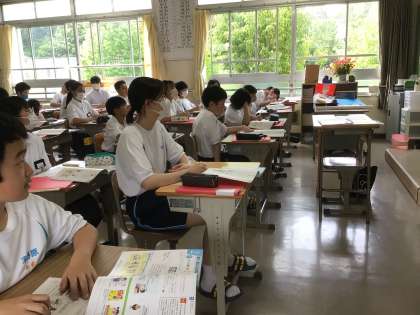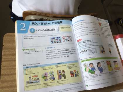 1組の横の教室(2組)は家庭科の授業です。内容は消費生活についてです。ネット通販などのメリットやデメリットなど、以前には扱う必要がなかった内容です。時代の流れだなぁと感じます。