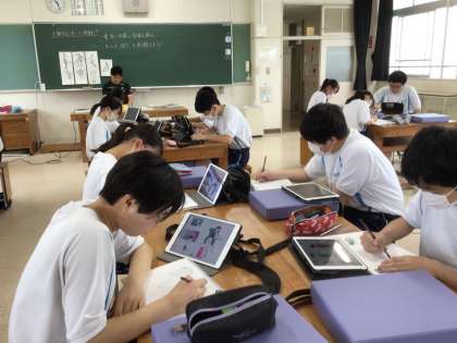 生徒が参考にしているのはタブレットの画像です。ここでもうまく活用されていました。