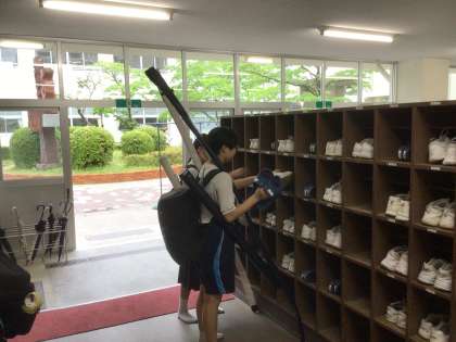 朝の登校の様子です。テストが終わり、今日から部活動が再開します。久しぶりに部活動の用具を持って登校する生徒の姿が見られました。1年生は今日から本入部です。先輩たち、親切に教えてあげてください。よろしくお願いします。