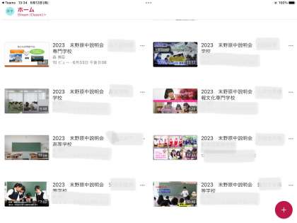 先週より私立専修学校の説明会を動画配信で実施しています。昨年度も動画で配信したところ「時間があるときに視聴できる」と好評だったため、今年度も説明会を動画配信で行うこととなりました。タブレットのTeamsから視聴できます。