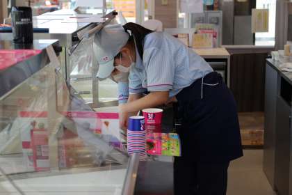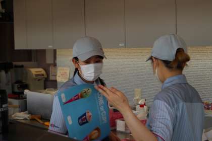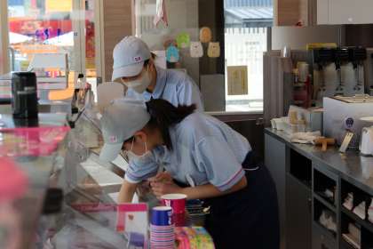 アイスクリーム屋さんでの様子です。きっと、見るのとやるのではずいぶん違いますよね。爽やかな接客で、衛生面に気を付けて、オーダーをきちんと聞いて素早く、間違いなく、きれいに…いろいろがんばらなければいけないことがあったでしょう。今日は暑かったし、時間帯によってはお店も忙しかったのではないでしょうか。