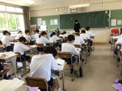 職場体験の翌日の2年生の様子です。2年1組の3時間目は国語です。向田邦子さんの随筆について考えています。職場体験の疲れはありませんか?今日からまた授業モードにしっかり切り替えていきましょう。
