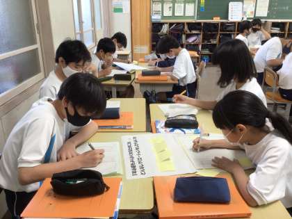 班で話し合いを行っていました。テーマは「学級レクリエーションについて」です。学級活動でしょうか?いいえ、国語の授業です。説明文や物語文の読み取り、ことばのきまり等だけでなく、話す、伝え合うといった学習も行います。